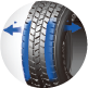 10mmより幅広いトレッド設計により、接地面積を拡大し、ショルダー摩耗をより均一化